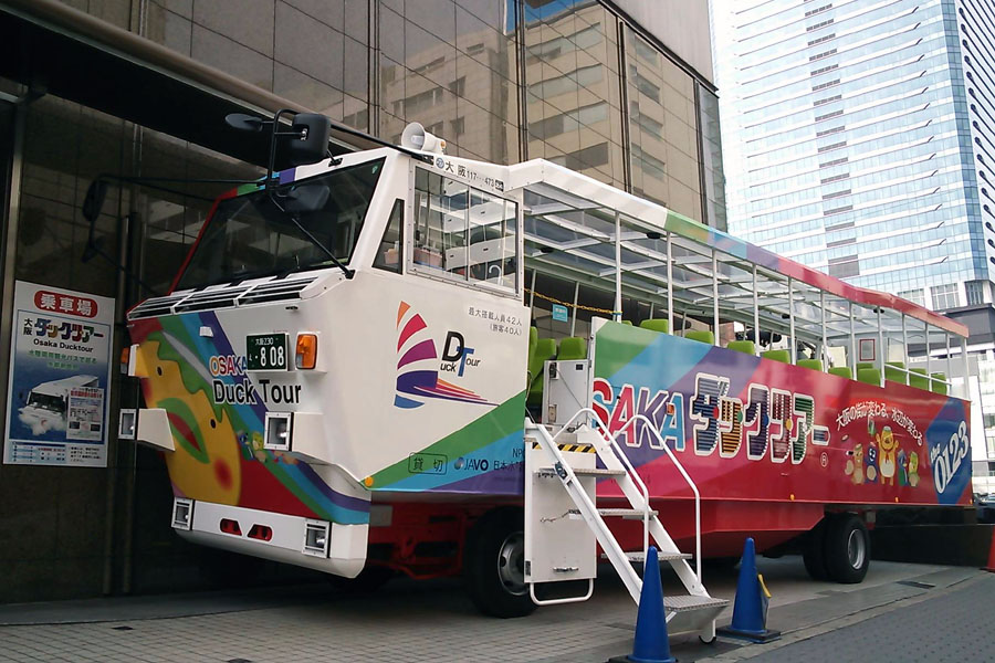 2012年度には大阪の中心地梅田に乗り場を移し陸路のコースを一部変更、 2013年より陸上は株式会社ジパングへ運行を委託。ラッピングも新たに施し大阪の動く観光名所として好評運行中。